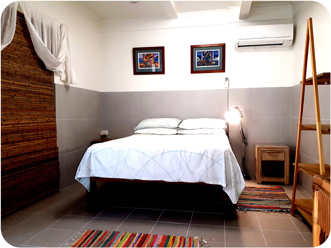 The rooms vary in size and rate from small or large and modern downstairs to the original Queenslander style with casement windows, high ceilings and timber floors upstairs. All are air conditioned and fast wifi (NBN FTTP) is accessible throughout the property.